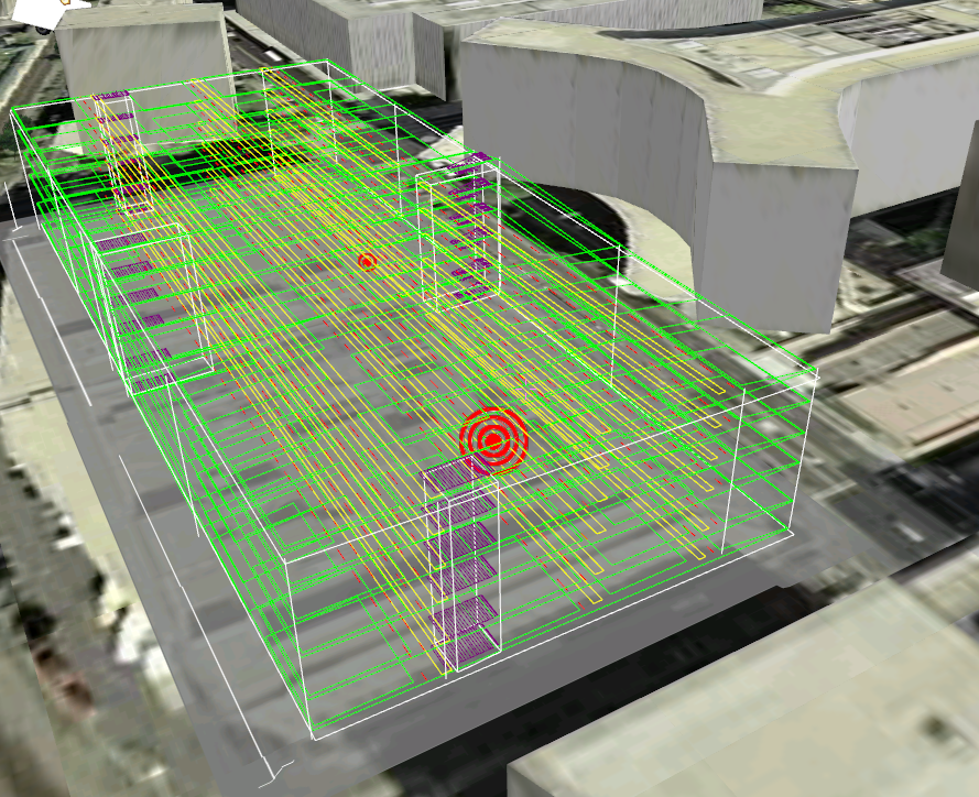 通過(guò)實(shí)時(shí)調取攝像頭信息和建筑物CAD信息,可以對室內突發(fā)事件進(jìn)行有效監控管理。
