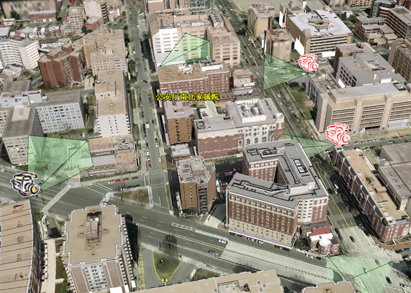 系統提供接口,可以接入視頻信號,在三維場(chǎng)景中通過(guò)點(diǎn)擊相應的攝像頭符號,可以調取視頻監控錄像,進(jìn)行播放、回放等操作。從而實(shí)現對轄區的實(shí)時(shí)監控管理。