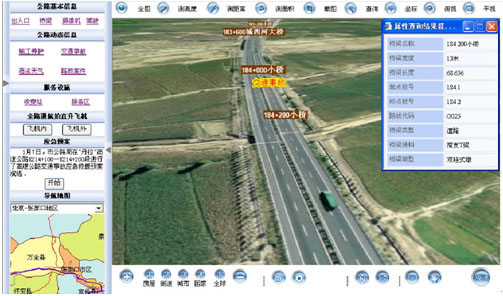 交通基礎設施管理功能,能夠實(shí)現應用平臺上交通設施分類(lèi)管理,并且通過(guò)三維仿真將道路、橋梁、高架、天橋地道、大型橋隧等不同的管理對象建立了相應的數據模型。并可對基礎設施進(jìn)行空間數據和屬性數據的檢索查詢(xún)。