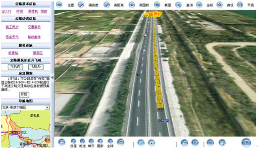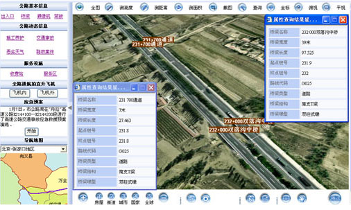 利用該功能模塊可使養護部門(mén)根據養護計劃對養護路段進(jìn)行相關(guān)數據添加,三維地圖上及時(shí)對應顯示出公路養護狀況(橋梁、路面管理情況等),展現給管理部門(mén)和公眾。