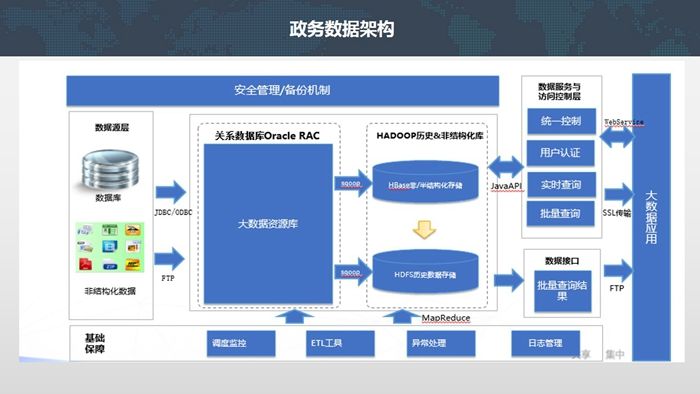 基于大數據的政務(wù)信息資源綜合利用平臺構建了統一的政務(wù)及社會(huì )公共信息資源平臺,平臺整合的信息資源涵蓋政務(wù)信息資源和與城市、企業(yè)、市民相關(guān)的社會(huì )公共信息資源。平臺支持從數據采集、處理、存儲、管理到分析、利用的全業(yè)務(wù)過(guò)程。